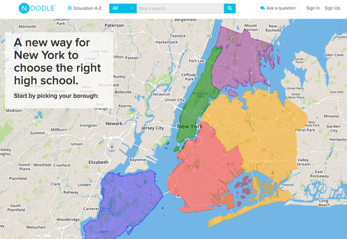 In the fall of 2013, Noodle participated and was a finalist in the New York City Department of Education School Choice Design Challenge. The purpose of the challenge was to create a product which would help students and parents navigate the difficult and often confusing high school discovery and application process in New York City. I led the product work related to the creation of the NYC High School Search as well as profiles for the individual schools.