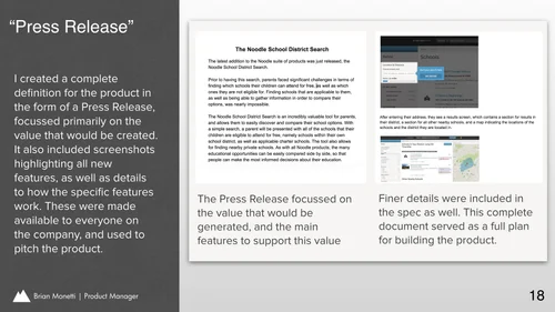 I led the design and creation of the Noodle Preschool Search, a product which matches people the most relevant of over 175,000 preschools based on twelve different criteria.